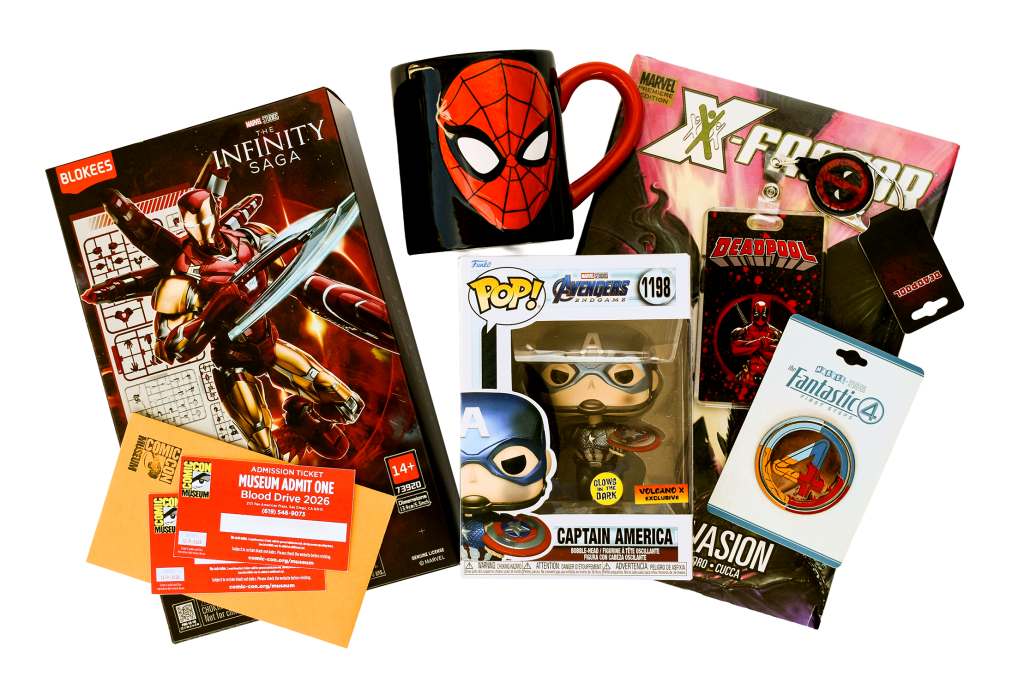 - All individuals who schedule their appointment in advance and present for donation at the WonderCon Blood Drive at the Anaheim Convention Center on March 27–29, 2026 will automatically be entered into a random drawing for a daily prize package.