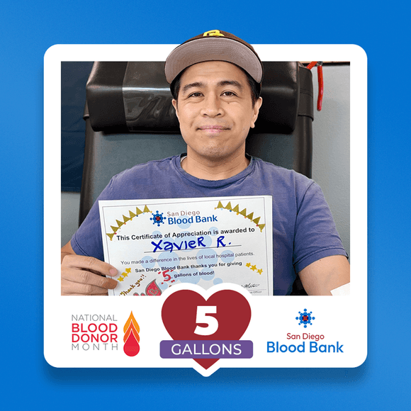 January is National Blood Donor Month, a time to celebrate the everyday heroes who make saving lives possible. We’re inspired by the impact you create and the milestones you reach along the way—like Xavier, who recently hit the 5-gallon mark.